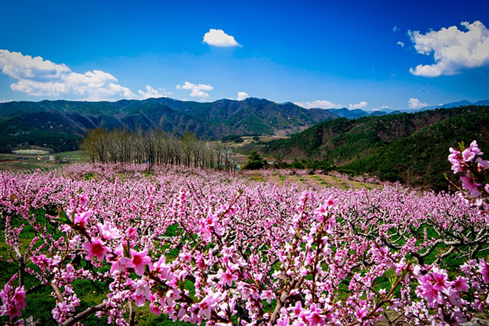매년 4월 초중순 안동에서 영덕으로 이어지는 34번 국도길은 온통 분홍 복사꽃이 가득하다. 그 반경이 넓어 차를 타고 드라이브를 추천하는데 영덕으로 들어오는 관문인 황장재를 시작으로 지품면사무소가 있는 신안리 일대와 삼화2리 영덕복사꽃마을과 옥계계곡 따라 이어진 주응리 야산 등이 대표적 명소다.