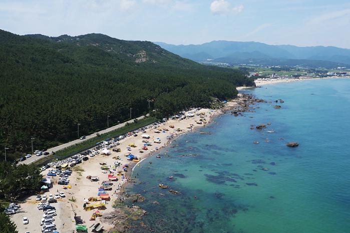 하루 10만 명을 수용할 수 있는 넓은 백사장은 모래놀이와 모래찜질을 할 수 있고 무엇보다 동해바다 중 물이 깨끗하기로 소문난 해수욕장이다.